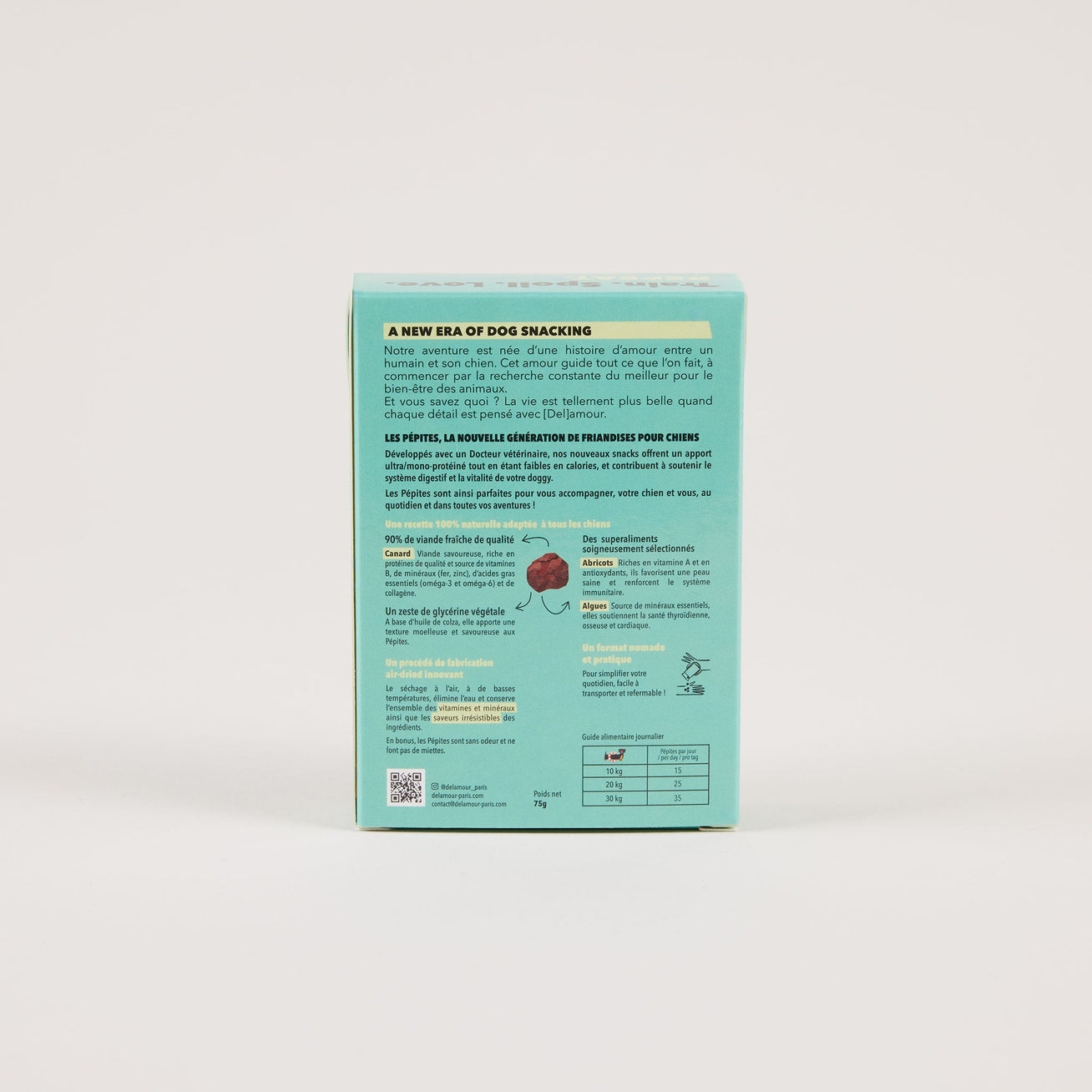 Composées à 90 % de viande fraîche, les Pépites sont riches en protéines et fabriquées grâce à un procédé de séchage à l’air innovant qui préserve les nutriments et la saveur, tout en garantissant une manipulation propre, sans miettes, sans odeur.