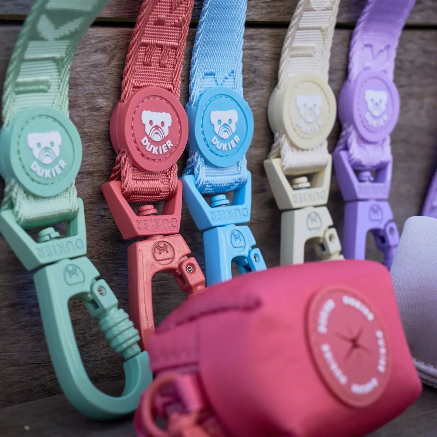 NOUVELLE laisse Essentials, avec le design le plus minimaliste et toute l'essence de Dukier. Cette laisse est super résistante et le mousqueton inclus est difficile à mâcher, votre chien ne s'échappera pas même s'il le veut grâce à sa fermeture de sécurité. Cette laisse ne vous oublie pas non plus, et nous avons recouvert la poignée de néoprène rembourré pour que vous ne vous blessiez pas en cas de tiraillement.